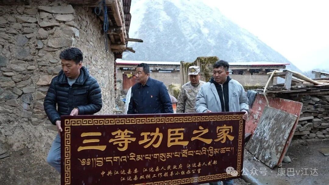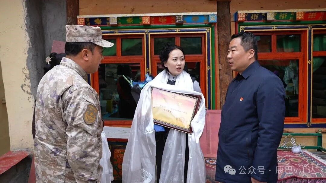 4月2日上午,县委常务副书记、政府常务副县长高伟,县委常委、人武部政委王伟,县民政和退役军人事务局局长永西带领相关工作人员,前往岩比乡、波罗乡、江达镇、同普乡为泽旺格来等10户家属送上荣立“三等功”牌匾及“四有”优秀士兵牌匾的双重喜报和慰问金,以高规格礼遇彰显“一人立功、全家光荣”的浓厚社会氛围,让军人家属切实感受到党和政府的尊崇与关怀。